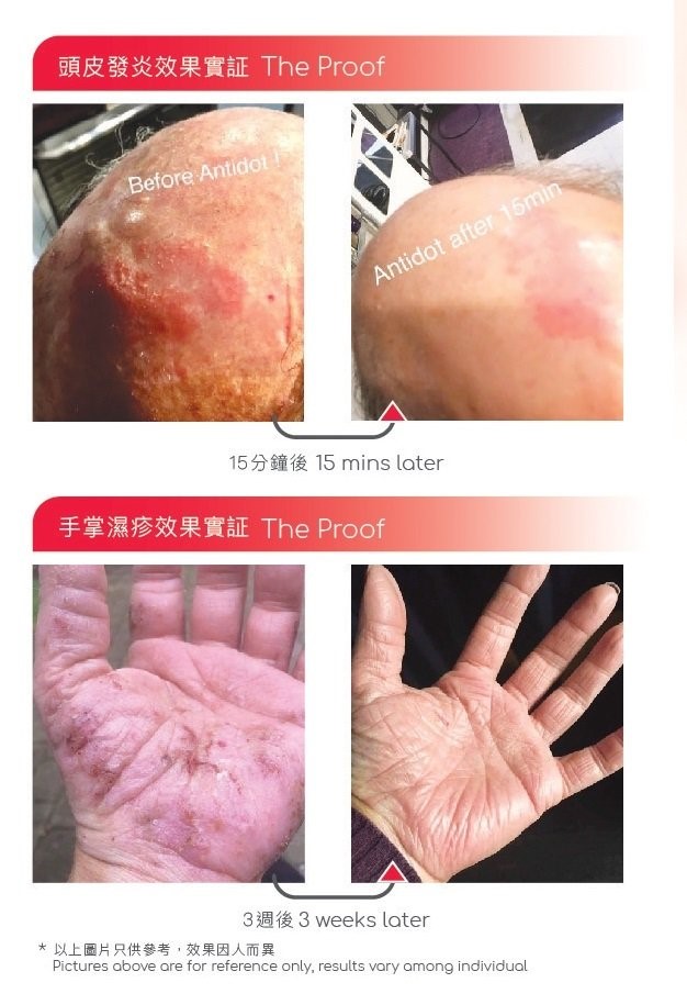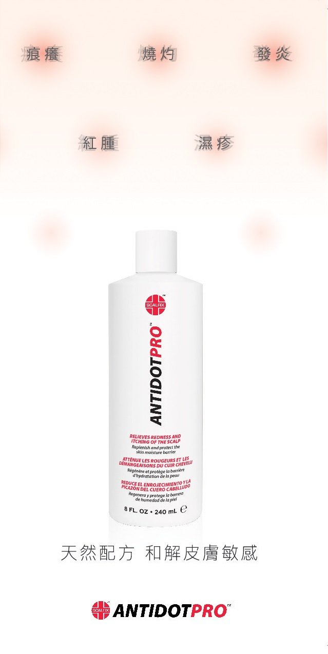 适用于因为发廊化学服务、纹身、纹眉、剃鬚、脱毛等所引起的敏感反应 (湿疹、头皮痕痒及有红点; 和皮肤红肿痕痒)
